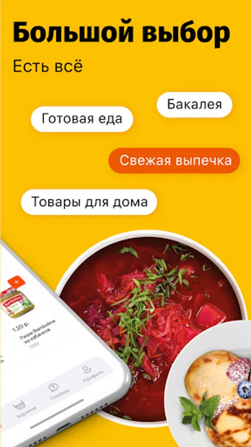 At the moment, free grocery delivery is available for some districts of Minsk. But it's okay, if your area is not on the list, then it will surely appear soon. Download the app now to get notified when new neighborhoods open.
