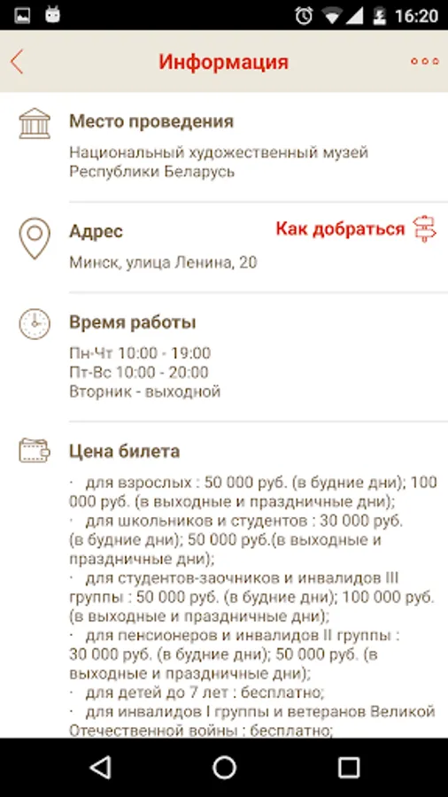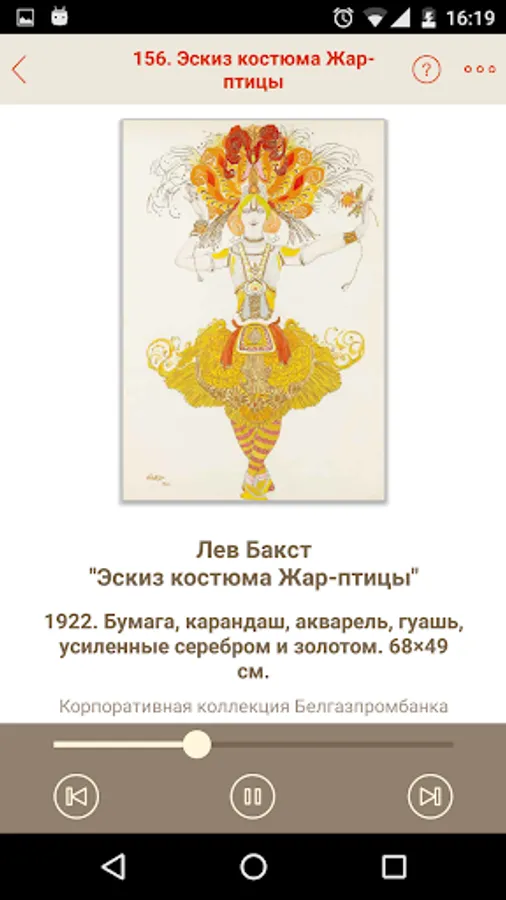 - Audioguide for 27 exhibits compiled by leading experts of the National Art Museum of Belarus (audio guide text reads Pavel Kanash (Belgazprombank);