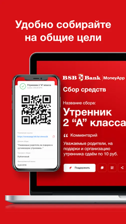 Fundraising is an easy and quick way to accumulate the required amount for general purposes. With MoneyApp, you can show the progress of the collection to all its participants. Create cash collection in group chats or social networks. Dropping is now as easy as never before.