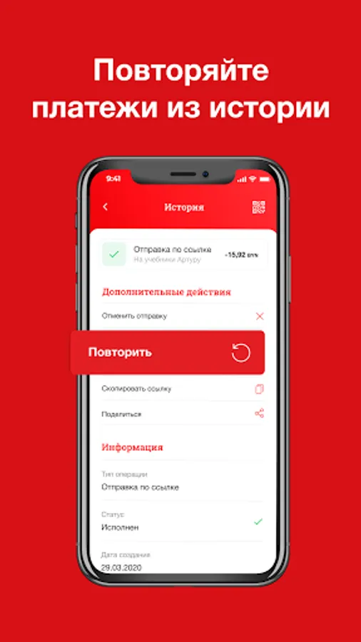 Use your payment history and repeat frequent transfers in a couple of clicks. Funds are instantly credited to the recipient's card.
