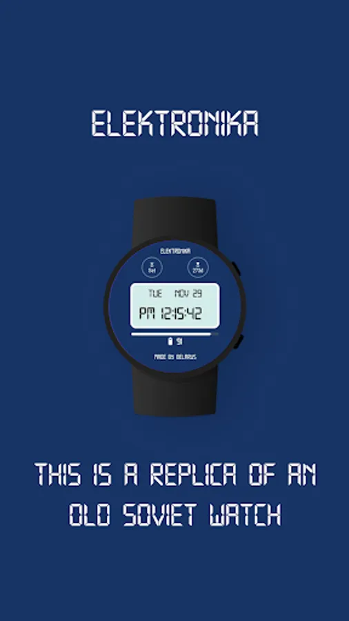 Elektronika - it's a sample project that shows how to create watch face for Android WearOS. Elektronika based on Google WatchFace Sample, but was subject to a complete refactoring. This is a replica of an old Soviet watch - electronics, that might be uses on Android watch now)