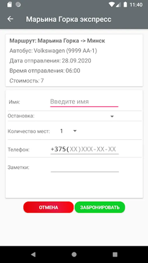 Our company provides intercity passenger transportation. Using the application, you can view the timetable and book a place in the minibus.