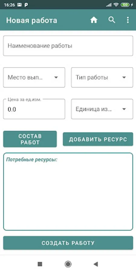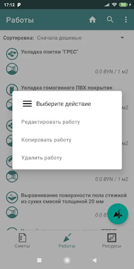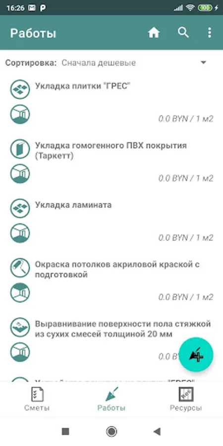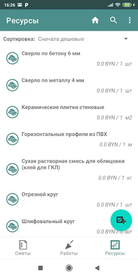 - Calculation of costs: specify the prices of works / resources and "Pocket Estimator" will calculate the cost, as well as the consumption of resources.