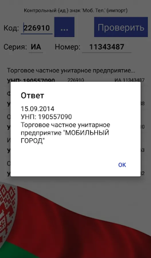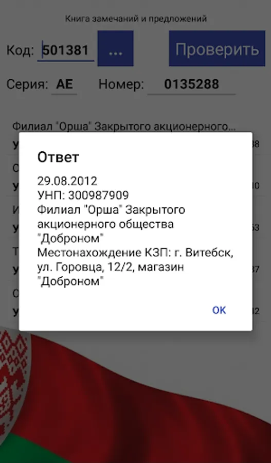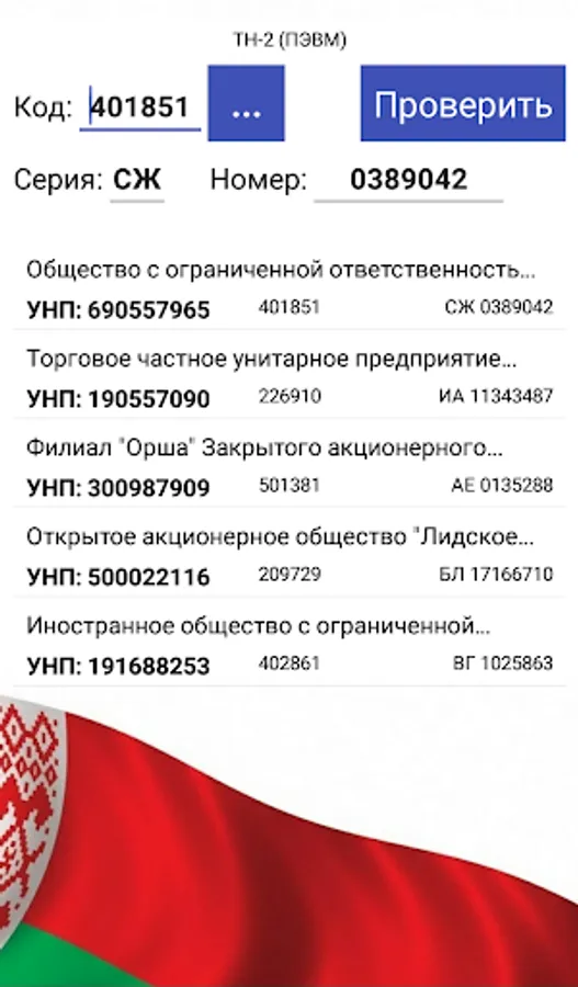 Application for verification of invoices (TN), invoices and consignment notes (TTN), control marks, books of comments and suggestions, etc. in Belarus.