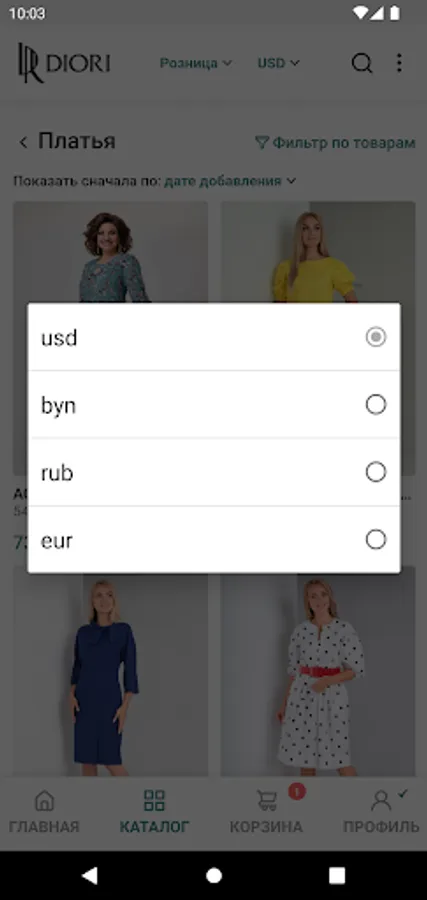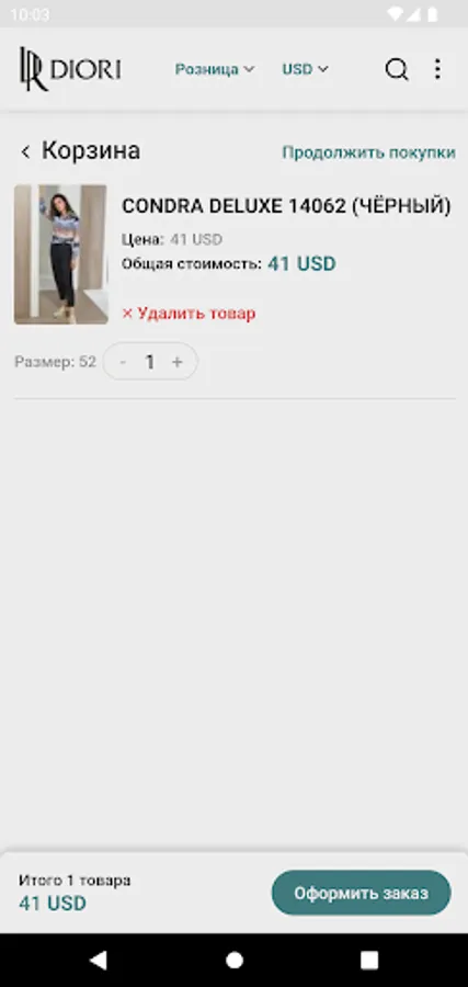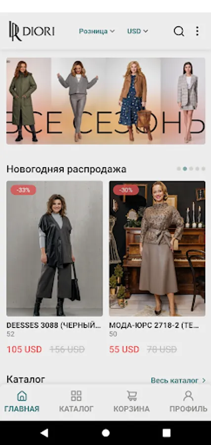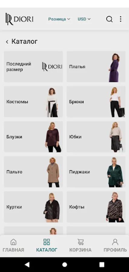 For convenience, all categories are highlighted in our application, so you can easily find any type of clothing, size, color, brand.