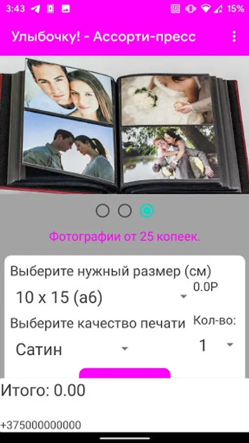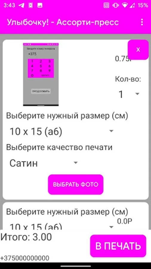 Application for ordering photo printing via the Internet from the phone (photo printing online).