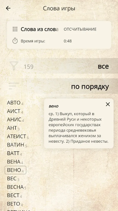 If the dictionary of the program does not contain a word you know, you can check its presence in popular online dictionaries right in the game and send an application to the developers to add it to the dictionary of the game.