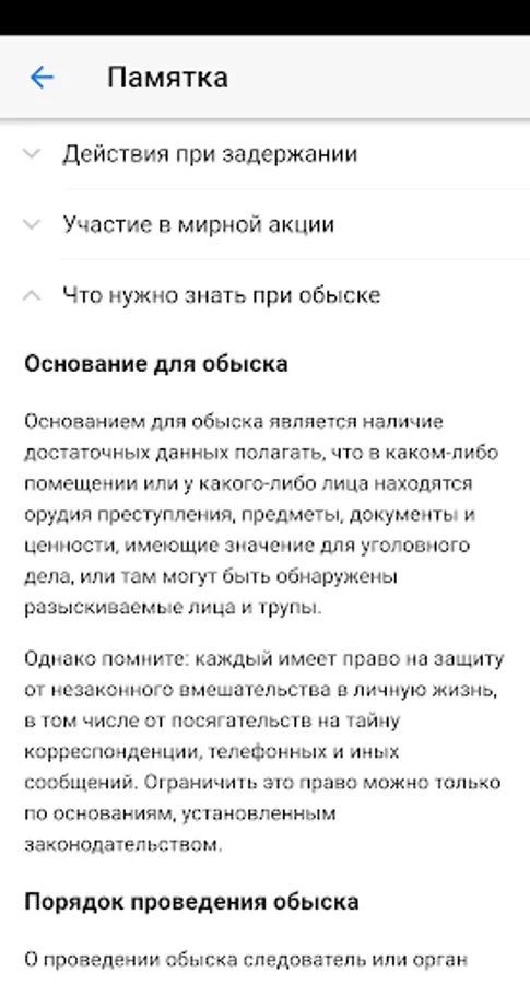 The application "You are right" is a pocket memo, designed to show the legal point of view when communicating with employees of internal affairs bodies. You can find out at any time what rights you have and how to protect them. The application does not provide mandatory rules that must be followed, but only suggests how you can behave in terms of legal norms. You can also play a situational text quest. The application was developed by activists of the human rights organization "Legal Initiative" and the gramadskag ruha "DZEYA"