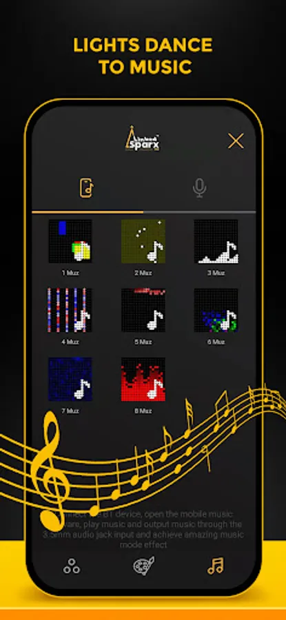 Dynamic music effects at your fingertips for a festive and joyful lighting experience. To achieve accurate music sync performance, you can pair your mobile device to light’s Bluetooth and connect a speaker to the controller to play music. Using controller microphone to directly react to environment sound or using phone microphone to play local music are also possible.