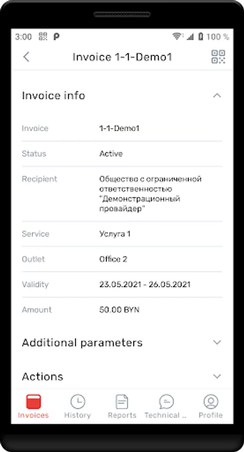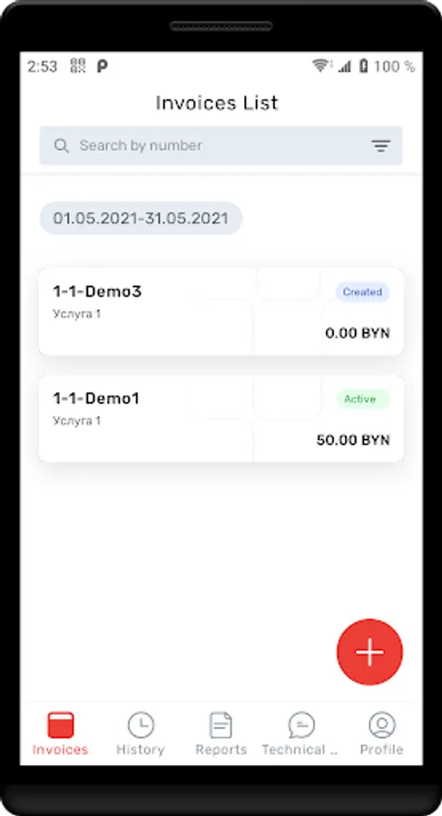 - Viewing the history of paid invoices (convenient division in the list by payment dates)