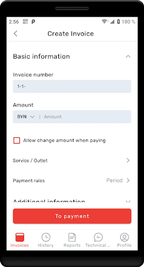 - Notification of invoice payment and instant transition to information about the paid invoice