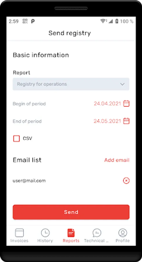 - Financial control - reports on the Registry for operations, the Registry for operations with clients, Monthly act by email.