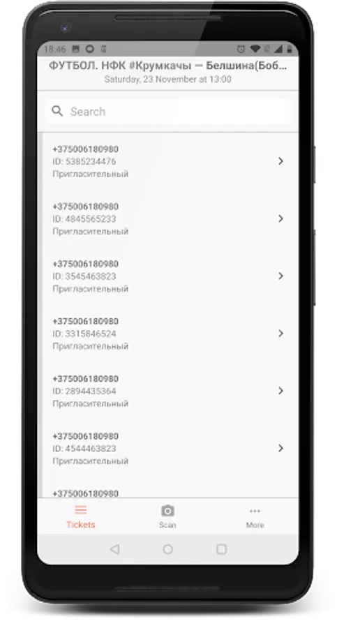 - Easily and quickly search for tickets for visitors in the application and solve non-standard situations if they suddenly arise (for example, a forgotten ticket)