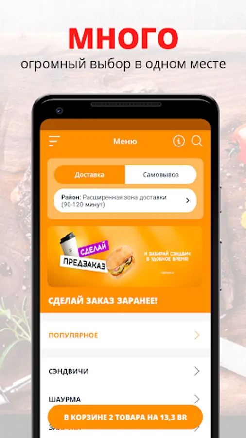 Delivery of sandwiches, shawarma and other ready meals in Gomel - with the One Two Food app, this process is even faster and easier!