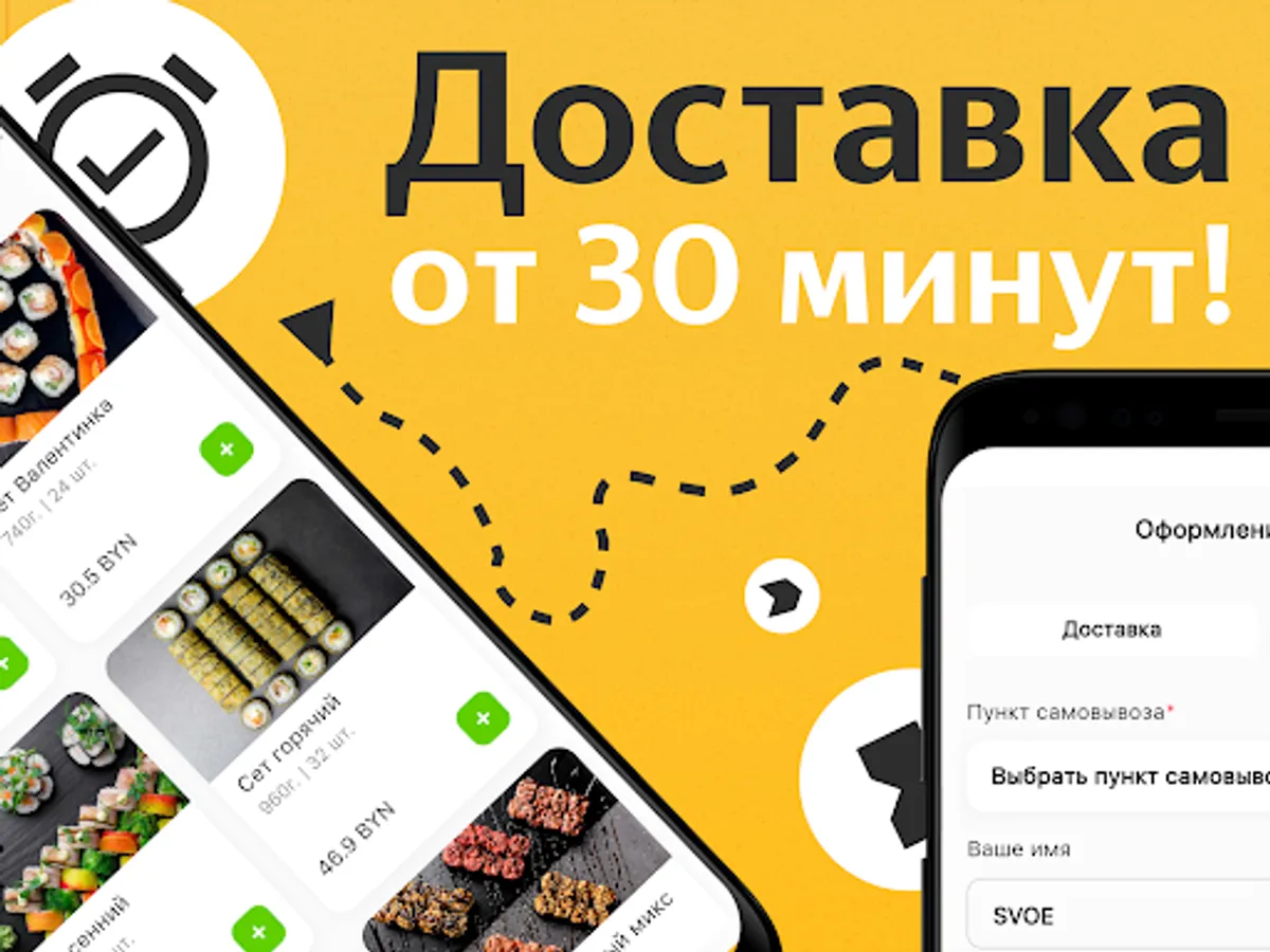 Cafe SVOE - sushi, pizza and burgers with delivery in a convenient application.