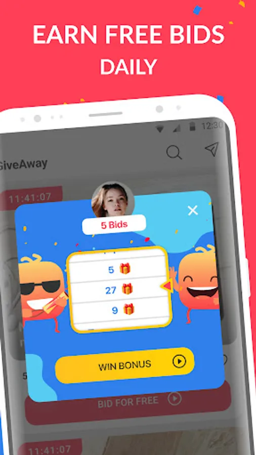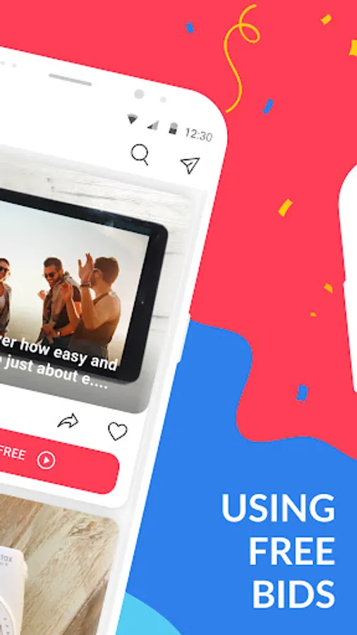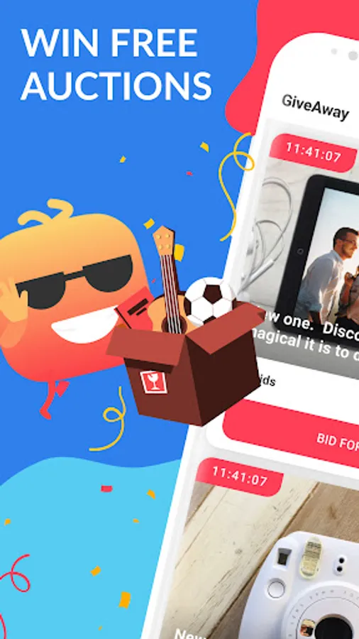 Making money has never been so simple! You not only earn cash but you also receive goods with a big discount or for free. It is not just online auctions where you buy used stuff and where you have to outbid the participants with a higher price. The GiveAway app is organized in a different way - you bid for an item with 1 Bid (received by watching video) at a time. To outbid someone you need to bid with 1 Bid only. You win the item if you were the last one to bid for it when the auction ended.