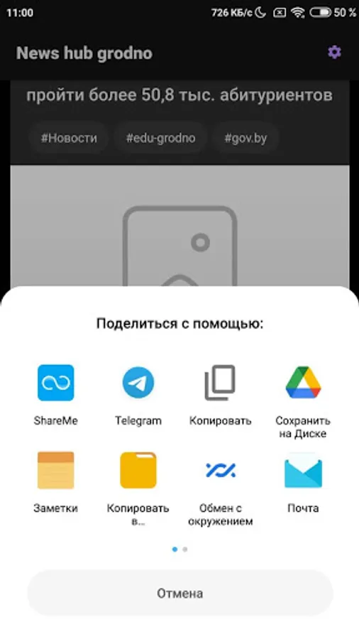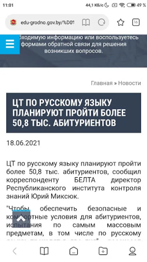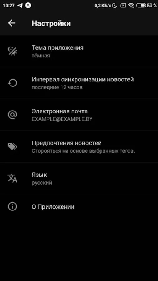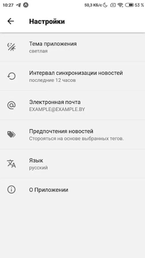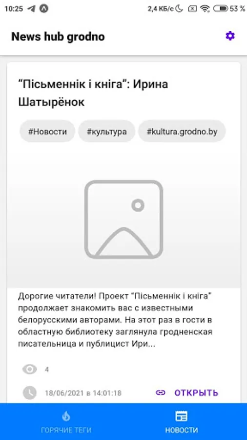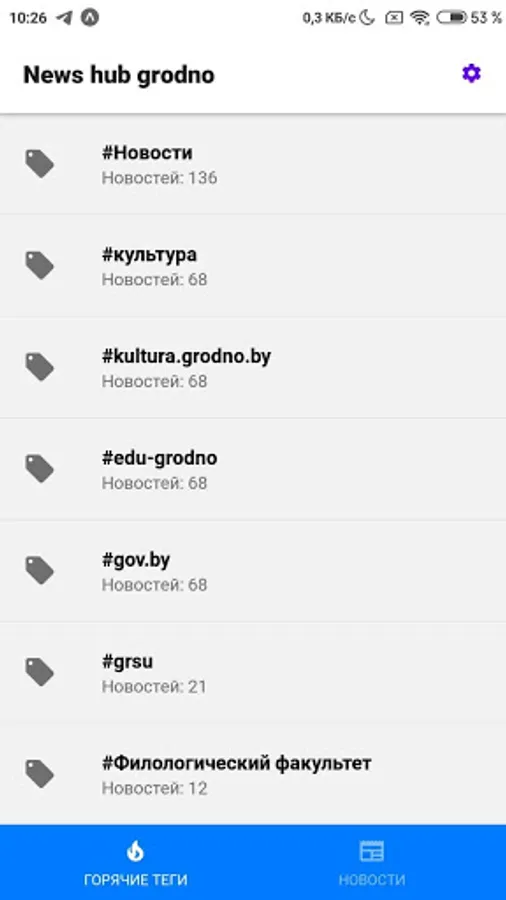 An application that displays news information obtained on the basis of the developed system of an Internet news aggregator.
