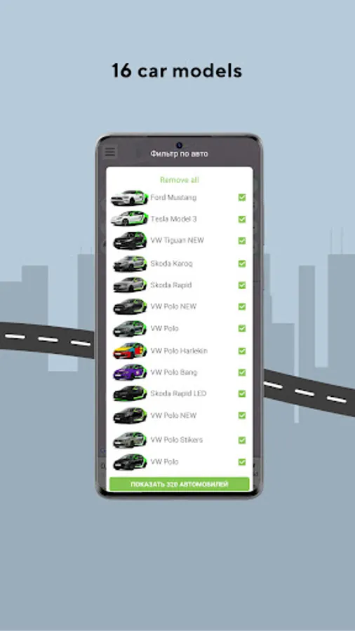 We have more than 28 new car models in our fleet, including: VW Polo, Skoda Rapid, NEW VW Polo, Kia Rio X, Skoda Karoq, VW Tiguan and Taos, Kia Seltos, Geely Coolray and Atlas Pro, Mini Cooper, Ford Mustang, Dodge Challenger, Chevrolet Camaro and Tesla electric vehicles. Each car is equipped with a charger and a holder for phones, a booster, a hand sanitizer (in winter, the trunk contains: a scraper brush for cleaning the car from snow, a bottle with washer fluid).
