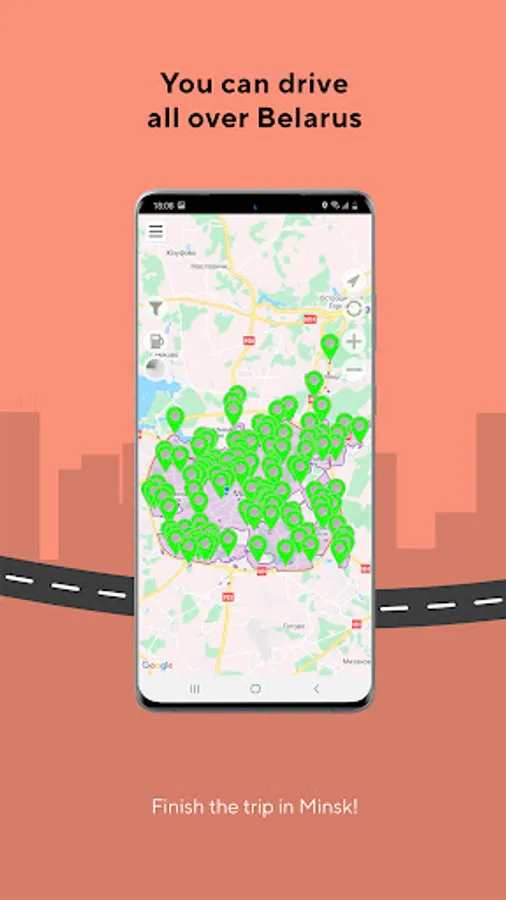 Travel is allowed all over Belarus. You can rent a car and leave it in the permitted areas marked on the map in lilac. The current completion zones can be viewed on our website or in the app.