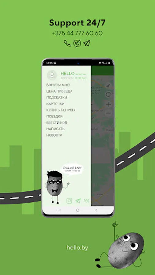 Hello App: car sharing - car rental Hello App in Minsk. Your car sharing anytime! Car rental Hello App in Minsk prices from 0.43 byn per minute, day - from 42 byn. The price includes: gas, excellent technical condition of the car, comfort and good mood) Our 24h online support will help you deal with any question, call or write to messengers at the number: +375 (44) 777-60-60.