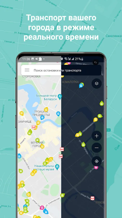 All of your city's transportation is displayed on the map in real time. Watch your bus, trolleybus, streetcar or shuttle. Now you know exactly where your bus is.