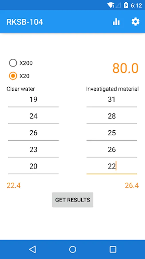 Make 10 measurements 5 to pure water and 5 to the test substance, the data type in the appropriate field.