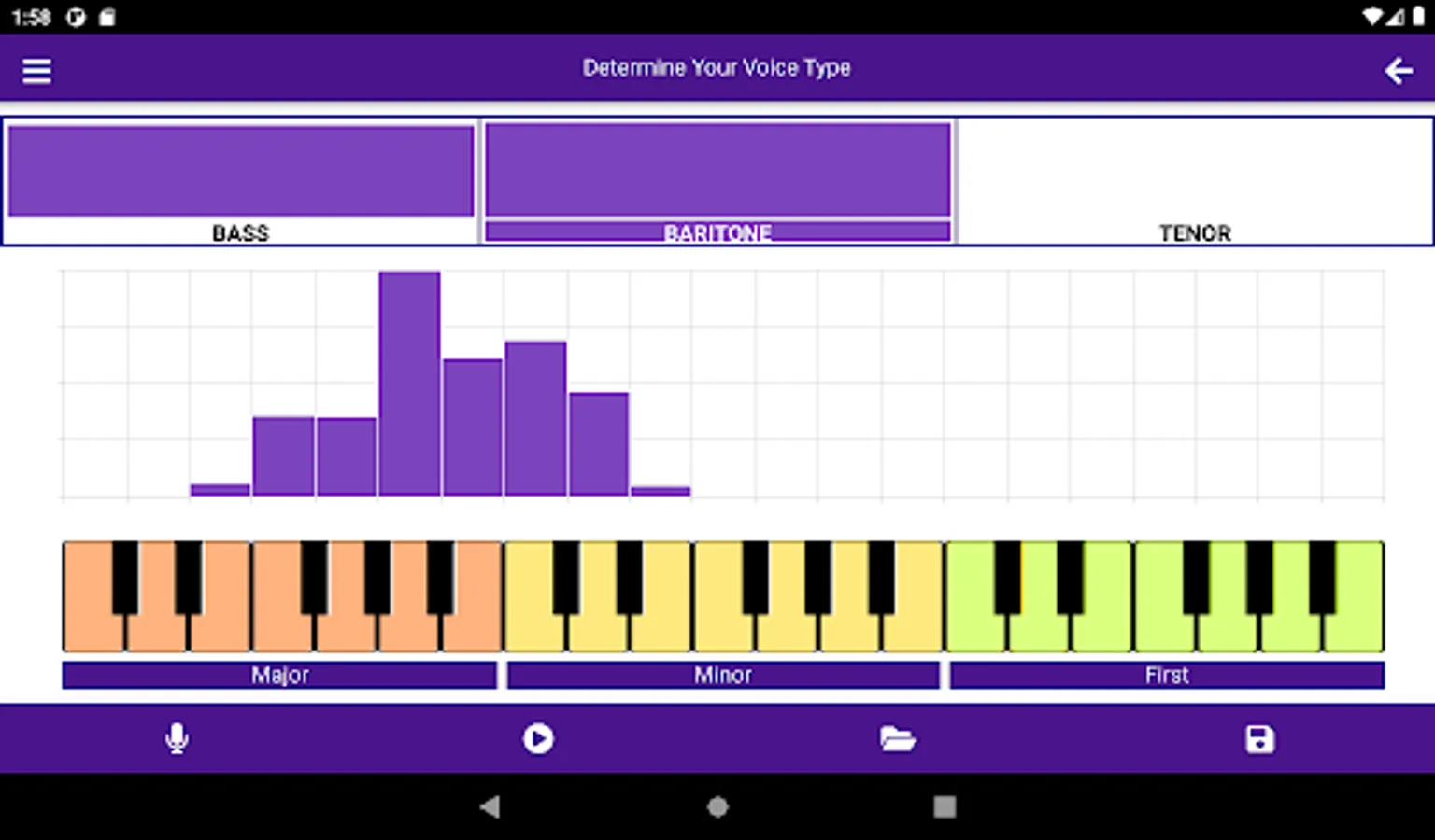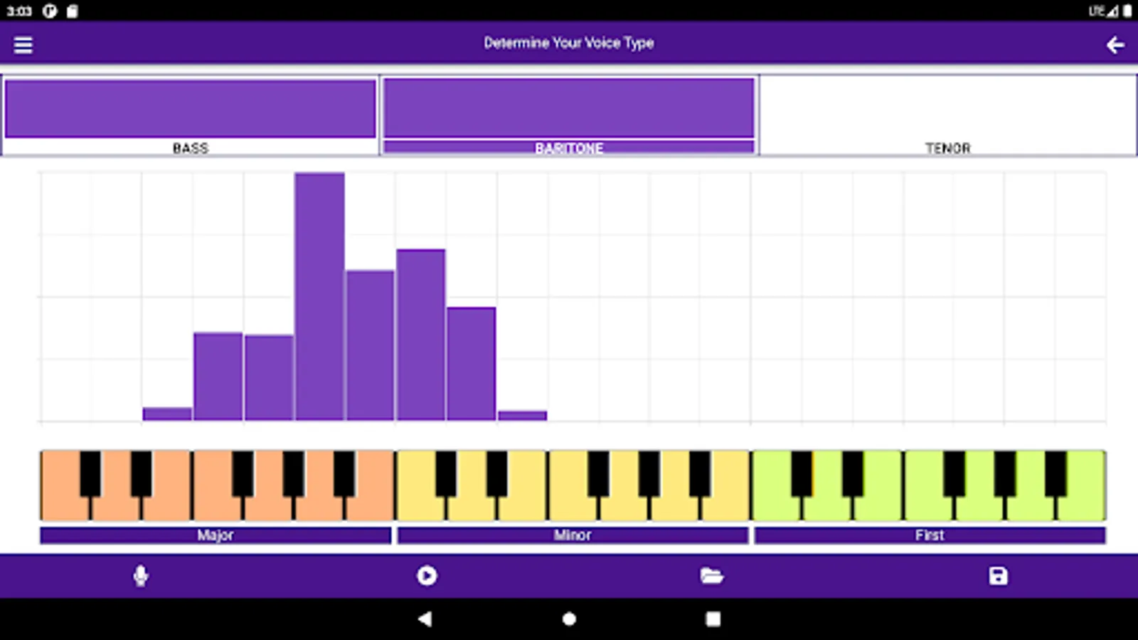 - determination of the type of singing voice (bass, baritone, tenor, contralto, mezzo-soprano, soprano);