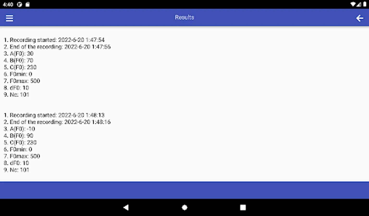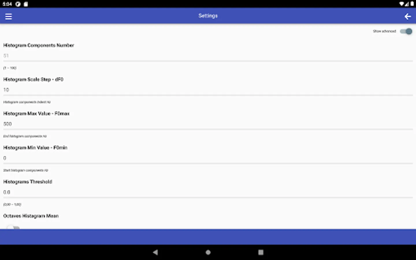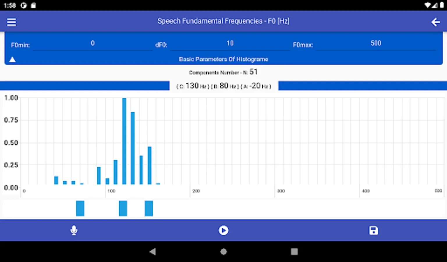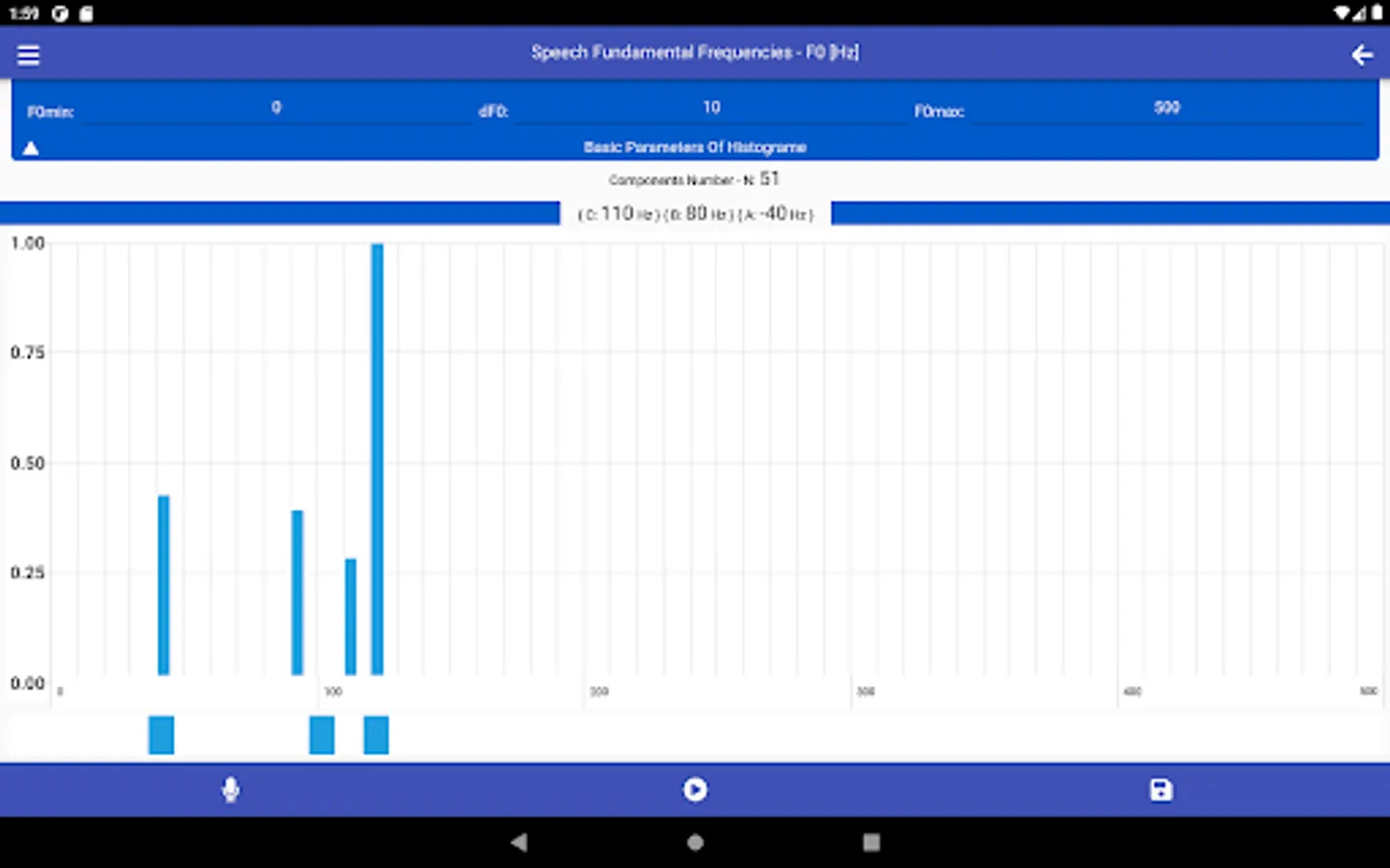 SMM has a wide range of options for choosing linear scales for constructing histograms used in the analysis of speech melody characteristics, namely: the range of analyzed frequencies - F0min and F0max, as well as frequency resolution - dF0. The choice of specific values of these parameters determines the number of histogram components - Nc.