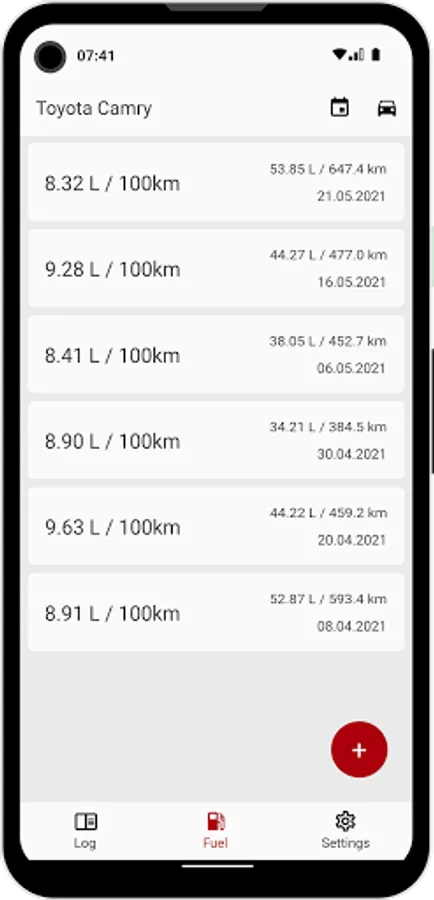 In Fuel section stored data about car fuel consumption. This section is usefull for people who have old cars which on-board computer do not calculate fuel consuption. Data stored in this section includes information about fuel consumption of the car, distance which the car passed after refueling and date when the car was refueled.
