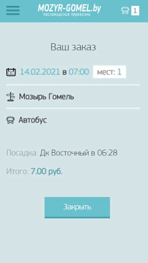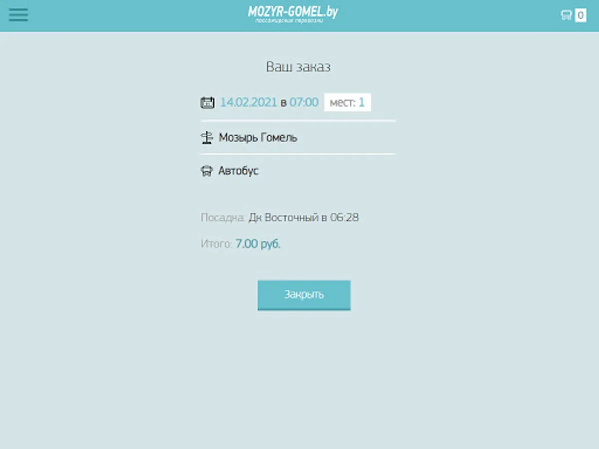 The application "Mozyr-gomel.by" makes it possible to order a ticket for a minibus from Gomel to Mozyr and back.