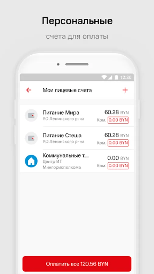 Having received an informational SMS-message about the invoices issued for payment, go to the "My Accounts" section and make a payment for all services in one click.