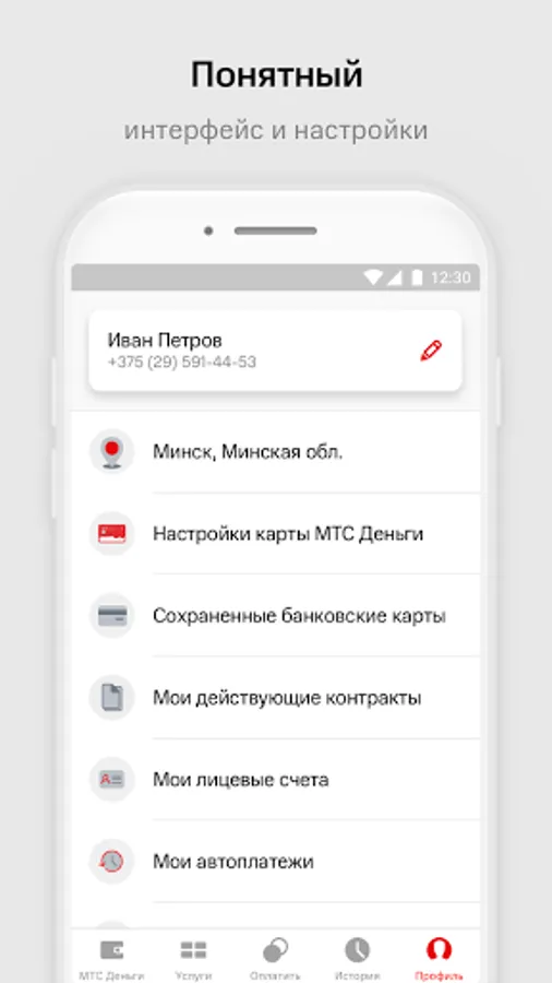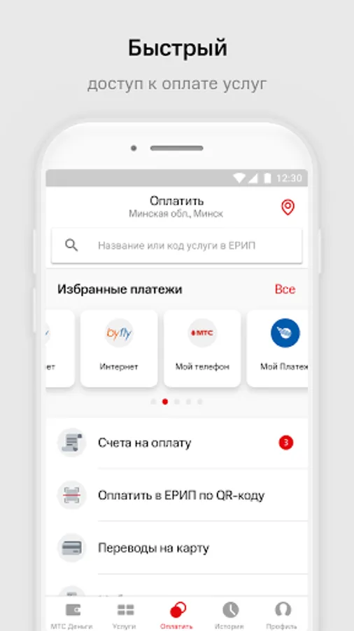 • pay from the balance of a MTS mobile phone any services of the Settlement system (ERIP);