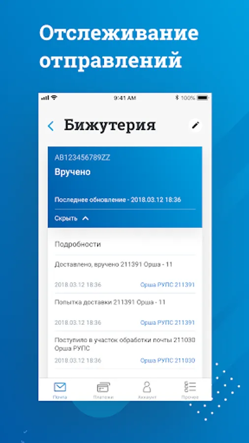 The official Belpochta app is a reliable and convenient service of the National Postal Service Operator of the Republic of Belarus.