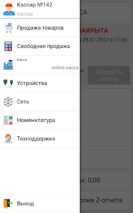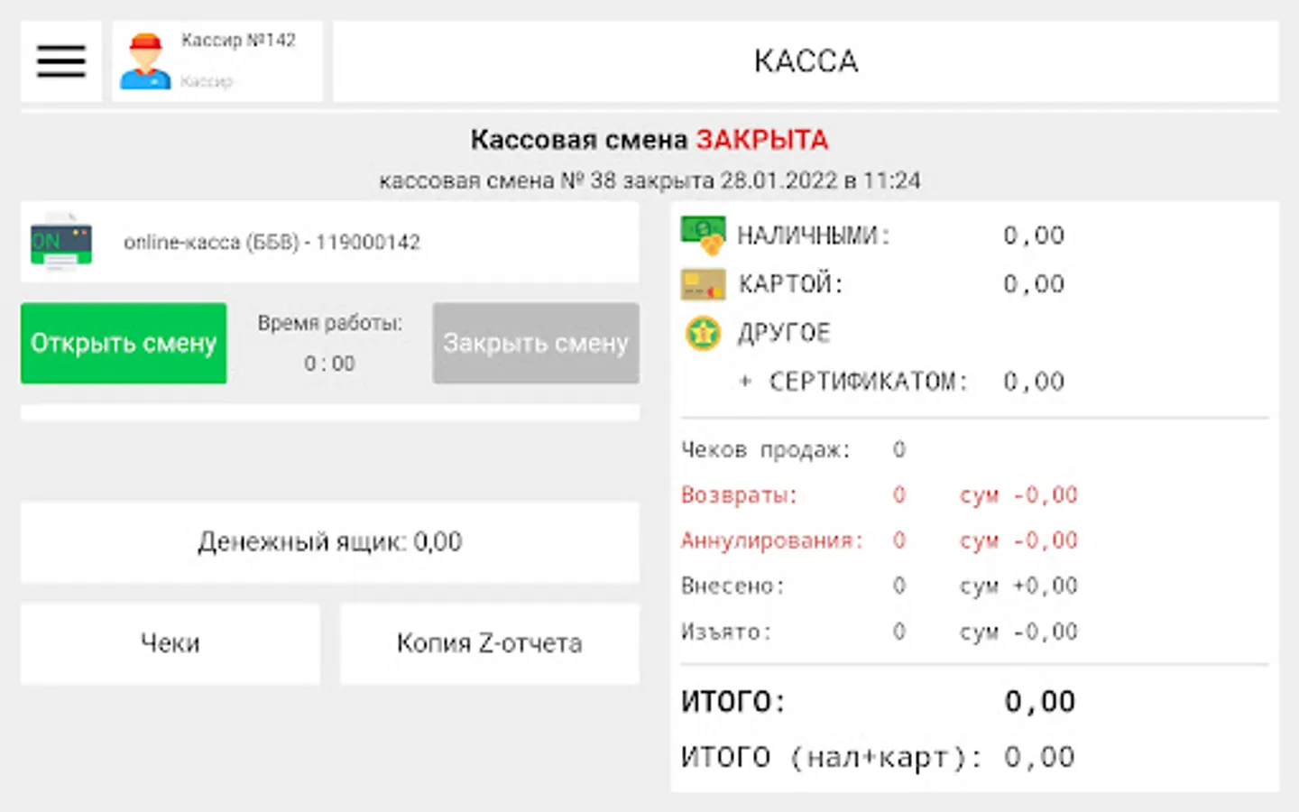 The cashier's workstation provides operations for entering, outputting data and printing documents for receiving cash and (or) settlements in a non-cash form by means of bank payment cards when selling goods, performing work, rendering services (hereinafter referred to as goods) using the online cash desk of the PCS "Electronic check ".