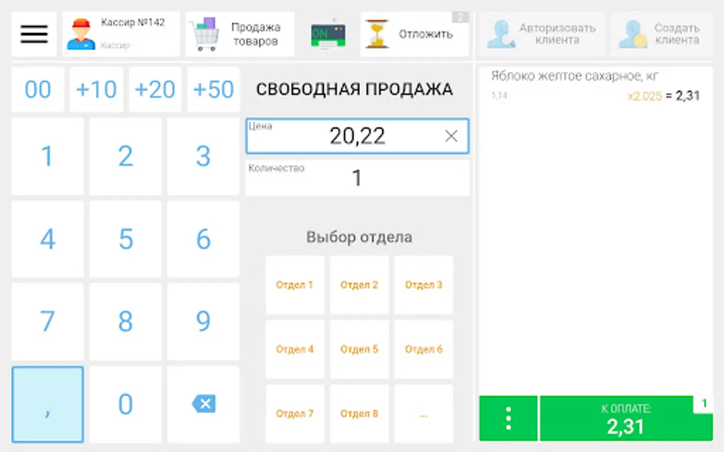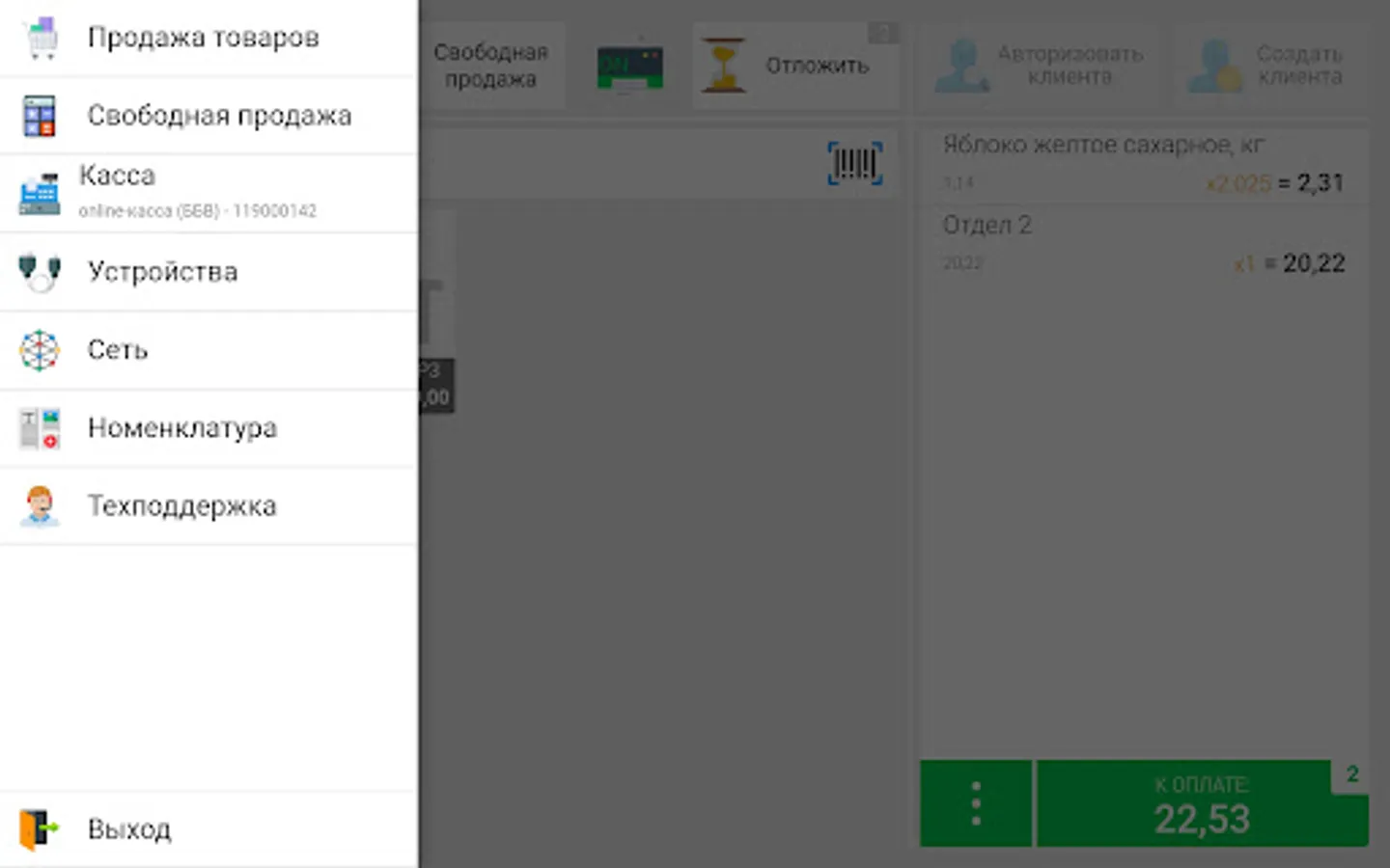The cashier's workstation is an interface application (thin client) of the PCS "Electronic check", is a user interface for interacting with the Online cash register (hereinafter referred to as the Application), operates online through access to the global computer network Internet via a secure connection.