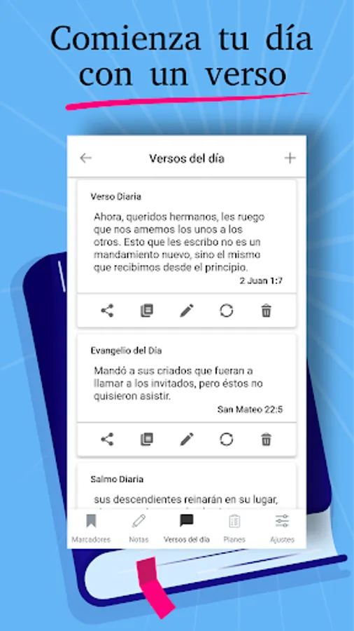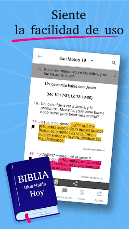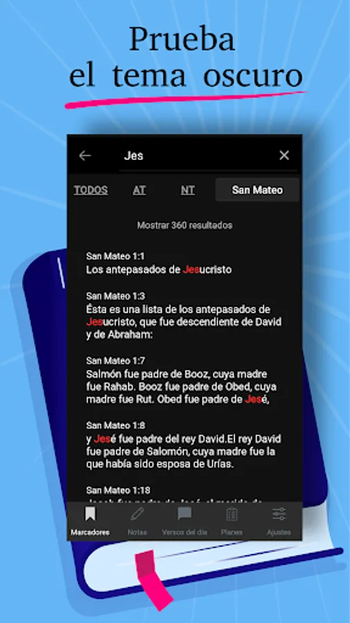 We offer an app tool with which you can feel all the ease of using the Holy Bible without Internet (offline) for free. We have added the ability to study the Bible with a smart daily reading plan to the app. You can refer to the verse of the day. Easily make lots of colored markers and notes. Use a convenient search and set a dark theme for a better perception of the Bible text.
