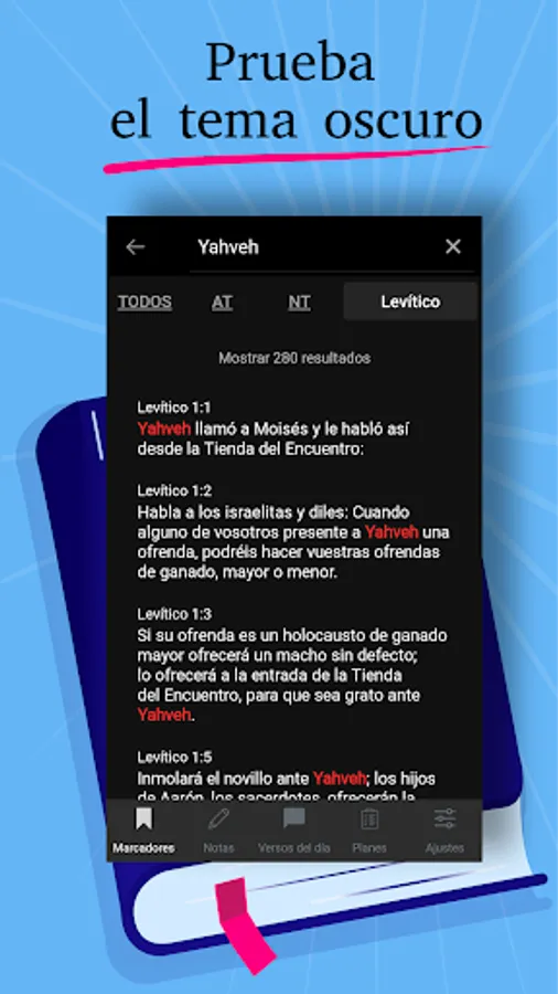 We offer a convenient app with which you can feel for free (free) all the ease of using the Holy Bible without the Internet. We have added the ability to study the Bible with a smart daily reading plan to the app. You can refer to the verse of the day. Easily make lots of colored markers and notes. Use a convenient search and set a dark theme for a better perception of the Bible text.