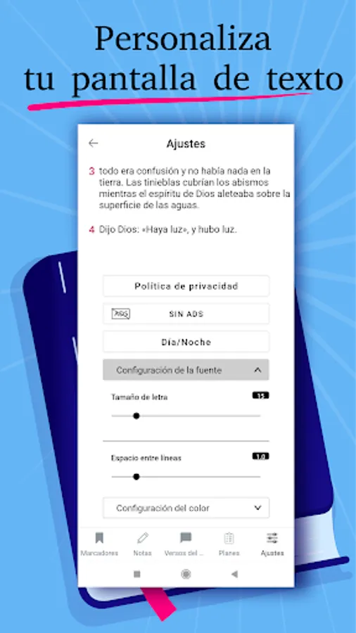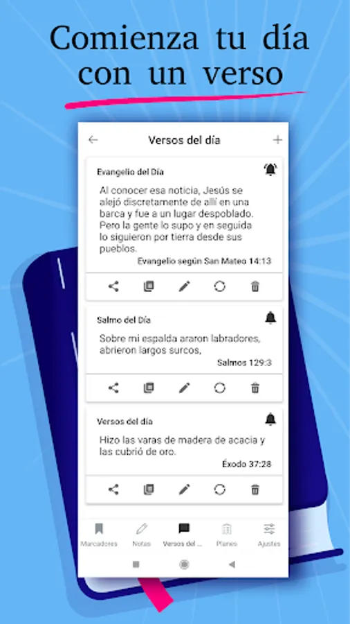 We offer a convenient tool with which you can feel for free all the ease of using the Holy Bible without the Internet. We have added the ability to study the Bible with a smart daily reading plan to the app. You can refer to the verse of the day. Easily make lots of colored markers and notes. Use a convenient search and set a dark theme for a better perception of the Bible text.