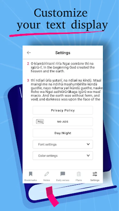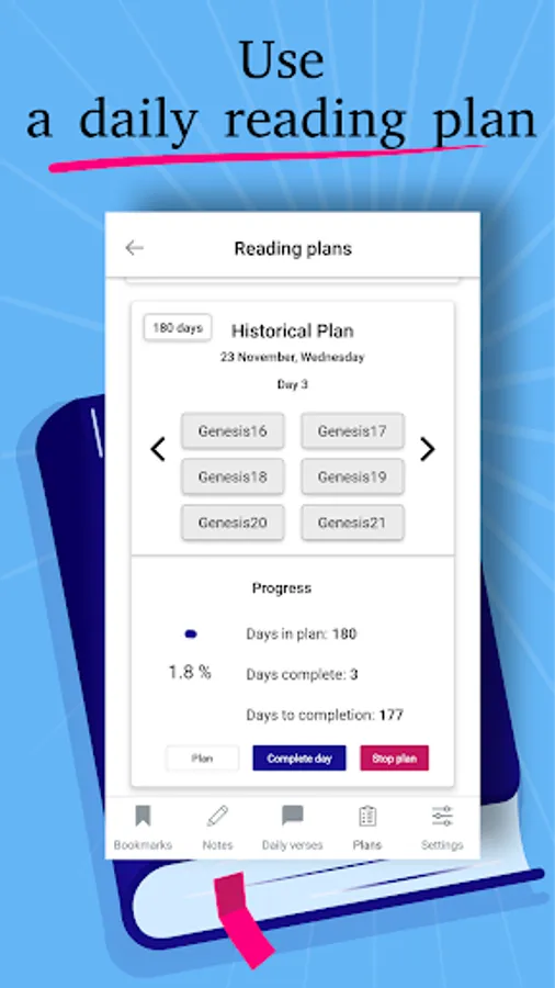 We offer a convenient app with which you can feel for free all the ease of using the Holy Bible without the Internet. We have added the ability to study the Bible with a smart daily reading plan to the app. You can refer to the verse of the day. Easily make lots of colored bookmarks and notes. Use a convenient search and set up a dark theme for a better perception of the text of the Bible.