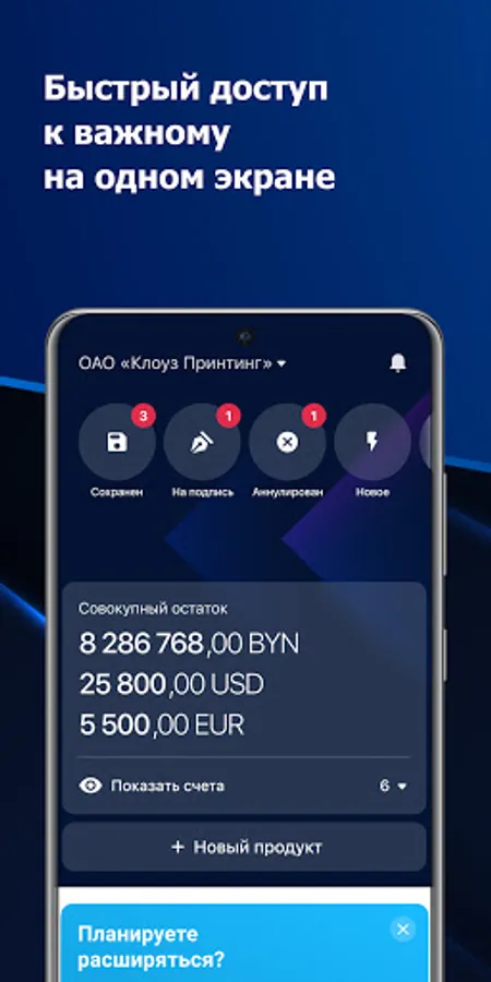 We analyzed the experience of many banks, learned the opinions of a large number of our clients and made it a reality. Now you can easily: