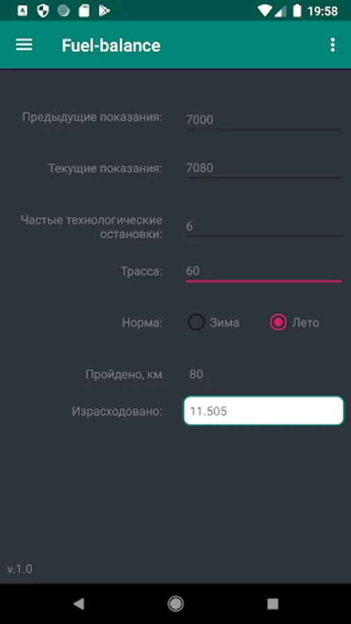 Calculator fuel. Designed to calculate the fuel residues according to the rules of the transport department of OJSC MNPZ