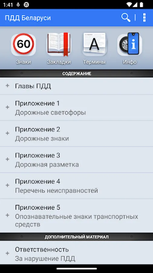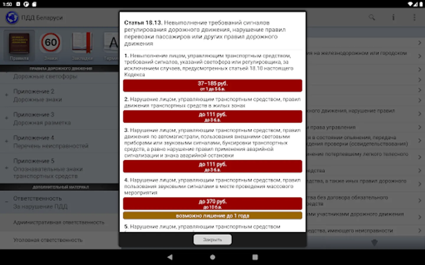 ATTENTION! This application is a reference book "Rules of the road" and does not contain tickets to test knowledge of traffic rules. We recommend learning traffic rules according to the Curriculum https://pdd.by/educ/full