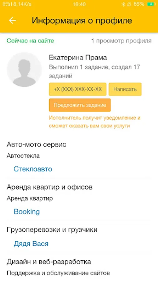 - Once you have selected your offer, you can phone to the customer for a detailed discussion of the job.