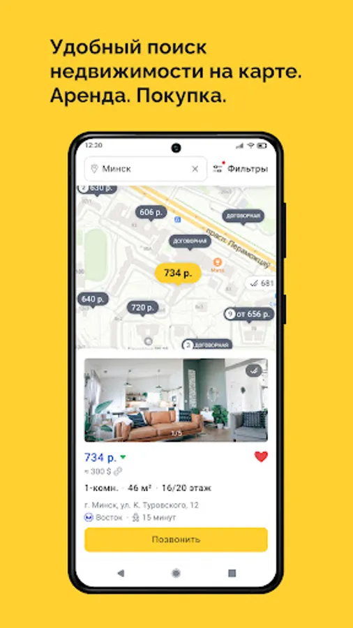 The Realt mobile application is a convenient and safe way to find and rent housing, sell or buy property in Minsk and throughout Belarus. Download the Realt app and find your perfect match today!