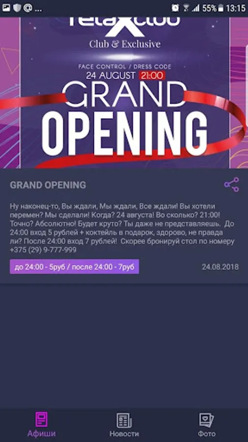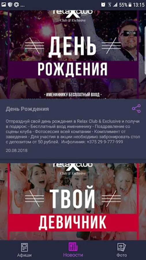 Posters for upcoming events, news and events, photo reports, notifications of upcoming events.