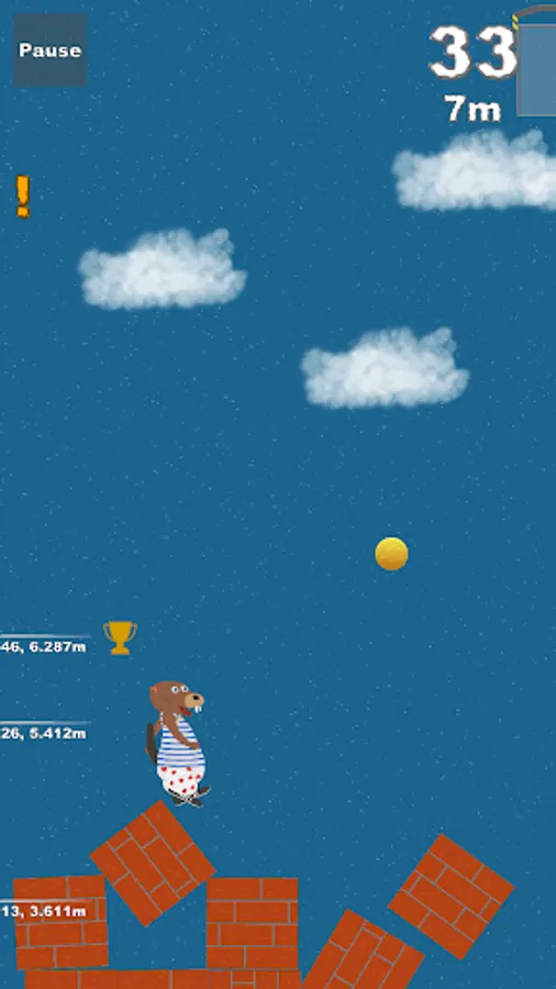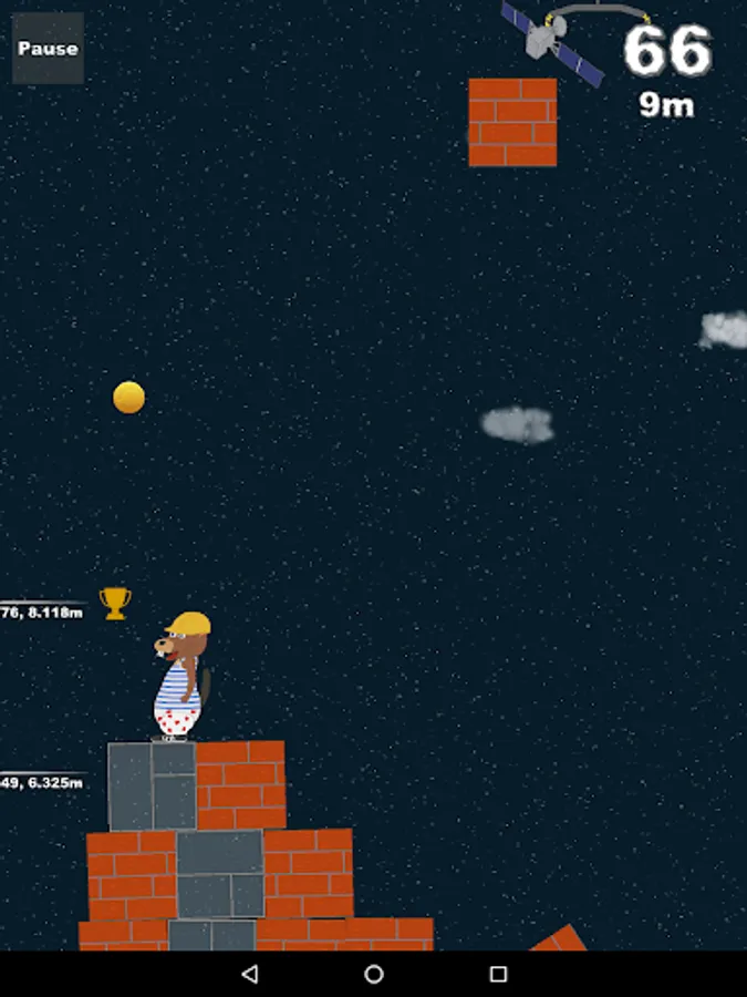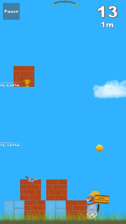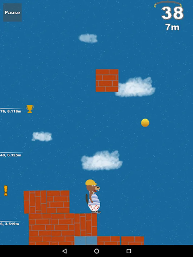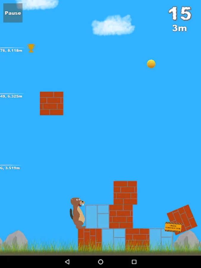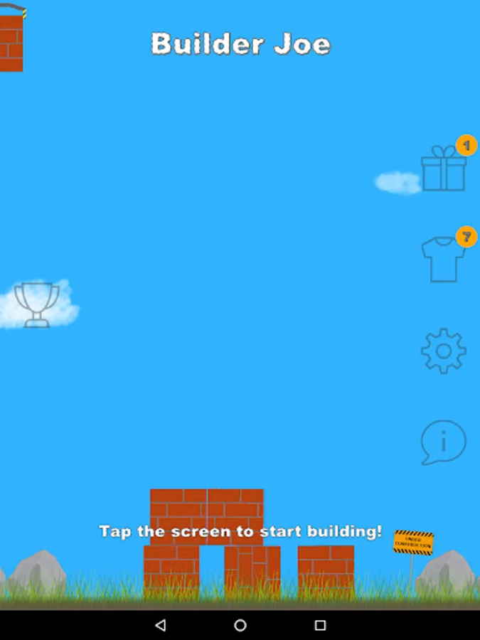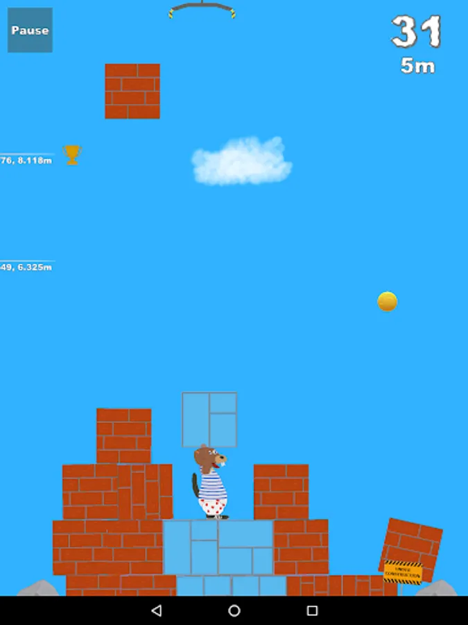 Control Joe with the accelerometer - tilt your device left and right to move. Connect the blocks with each other and get points! One or two touches on the screen - single or double jump. Rise as high as possible! Is the block badly positioned? Break it! Jump and swipe down. The block on which Joe falls will be smashed to pieces. But not all animals love Joe. Beware of the birds, jump on their heads to show who is the boss at the construction site. Share your results with friends!