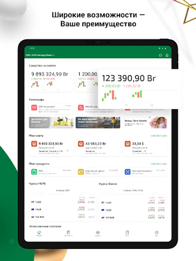 • совершать мобильные платежи в национальной и иностранной валютах;
