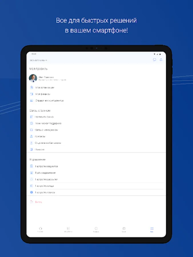 - получение сообщений от банка в разделе "Уведомления", настройка уведомлений