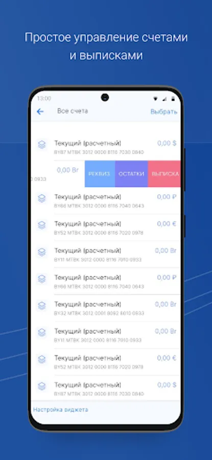- формирование выписки по счету в разных форматах, печать выписки и отправка выписки на e-mail