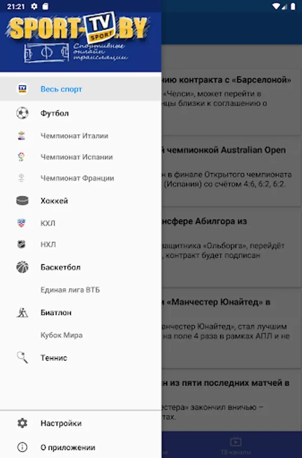 Sport TV was created to show online broadcasts of sports competitions, for both Belarusian and international sports.